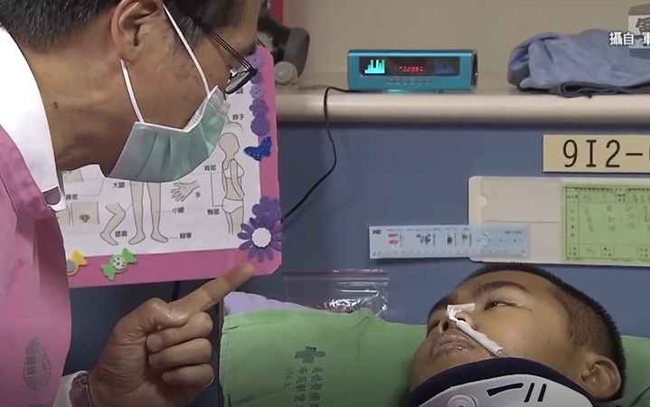 秦良丰躺在病床上,但復原狀況相當不錯,持續進步穩定中,面對部長的打氣,看的出秦良丰不時點頭致意,還用嘴型回答謝謝,但其實在加護病房探視前,部長也和家屬及醫生懇談,了解秦良丰的狀況。
