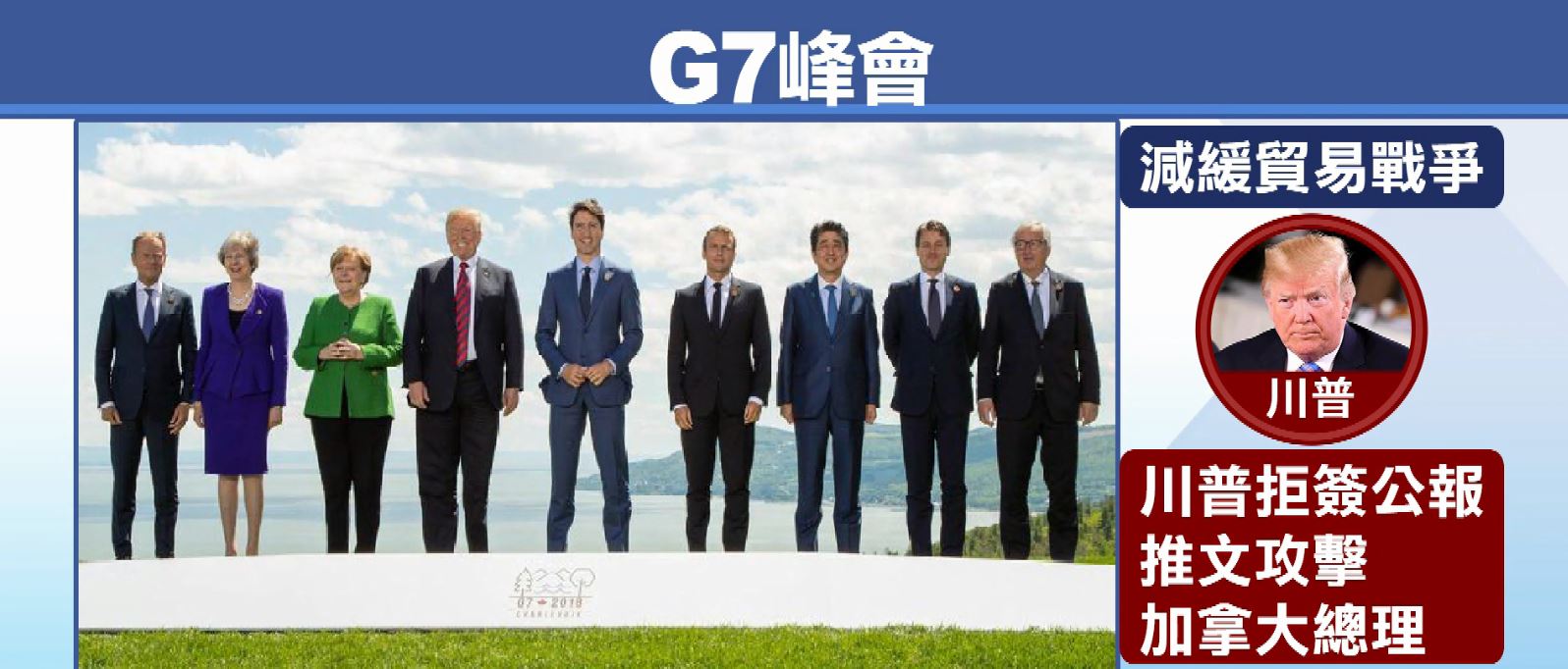 和樂融融的景象沒維持多久就破局,美國總統川普因為加拿大總理杜魯多的記者會氣炸了,杜魯多批評川普鋼鋁關稅壁壘,加國宣布七月一號展開報復性措施,川普覺得被人捅了一刀,加拿大竟然來陰的,他不斷推文痛罵杜魯多,「在G7峰會期間表現溫和謙遜,我離開後就說美國關稅是一種侮辱性的行為,杜魯多非常不誠實且軟弱。」