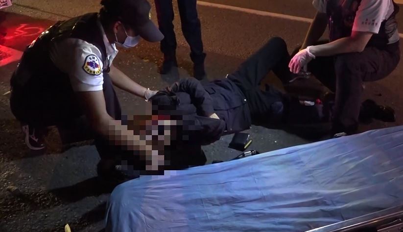 骨折,不過人意識清醒。醫護人員忙著幫傷者固定、包紮右腿傷口,醫護人員為男子治療,「我要稍微拉直一下,你會痛就深呼吸,一次就完成,不然你等下會再痛。」