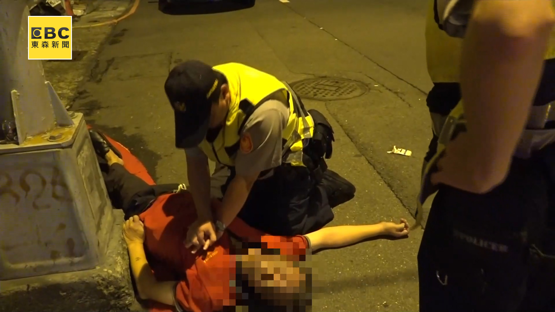 一下兩下三下,員警做的氣喘吁吁,做到手都痠了,汗水也從臉上滑落,但不放棄希望,繼續對男子進行