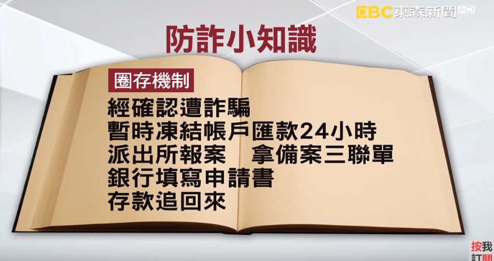 保七員警安撫陳姓男子情緒後,在行員協助下,啟動"圈存機制",暫時凍結帳戶的匯款24小時,所以民眾確認存款安全後,只要立刻去派出所報案,利用備案用三聯單,去銀行填寫申請書,就能將存款全數領回來。
