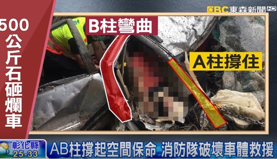 救援消防隊員:「車子變形傷者腳被困住,所以沒有辦法自行脫困,那我們把