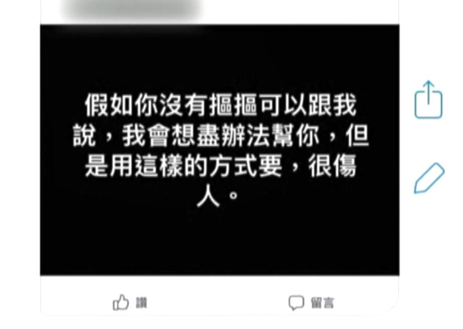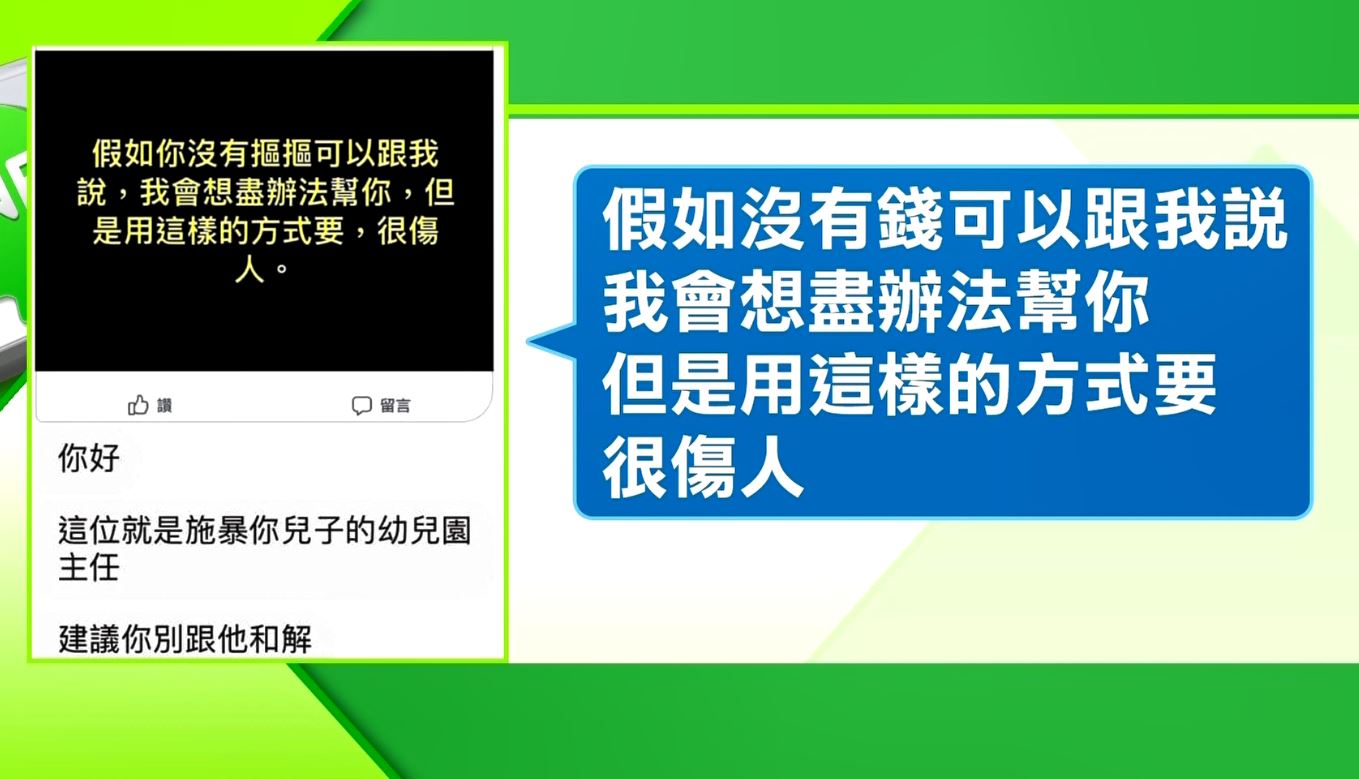 主任在臉書上寫道,假如你沒有錢可以跟我說,我會想盡辦法幫你,但是用這樣的方式要,很傷人。指的是男童媽媽要求民事