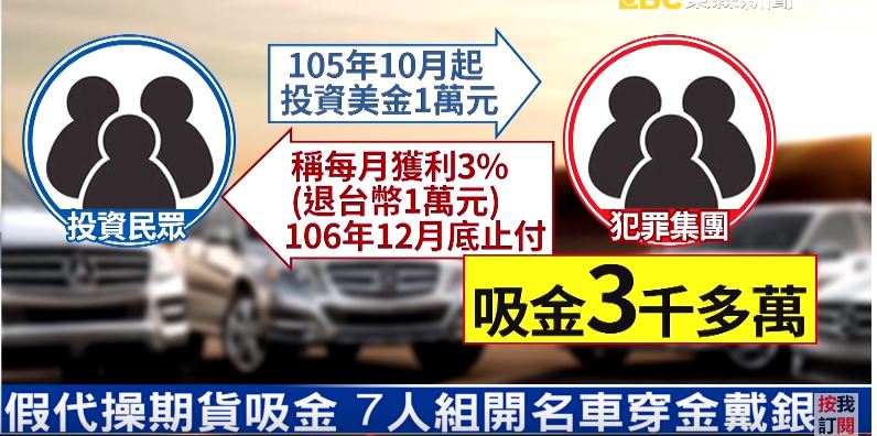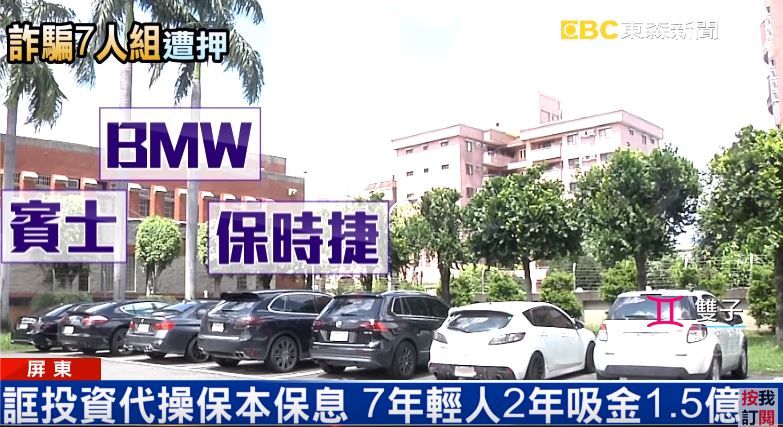 兩輛保時捷最新款休旅車,還有一輛賓士車和一部BMW轎車,加上兩台國產車,這些車子的車主全部不到30歲,七名沒有財經背景的男子組成詐騙集團,稱幫忙投資,短短2年吸金超過1億5萬。