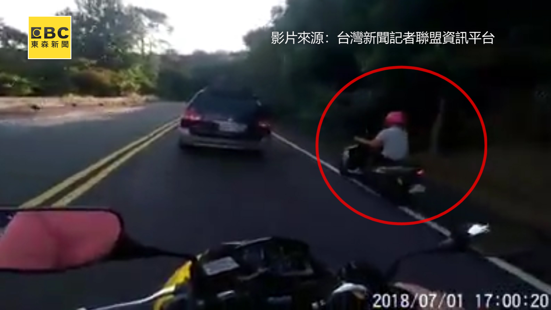 ▼無照少年山路過彎違規跨越雙黃線(攝自/台灣新聞記者聯盟資訊平台)