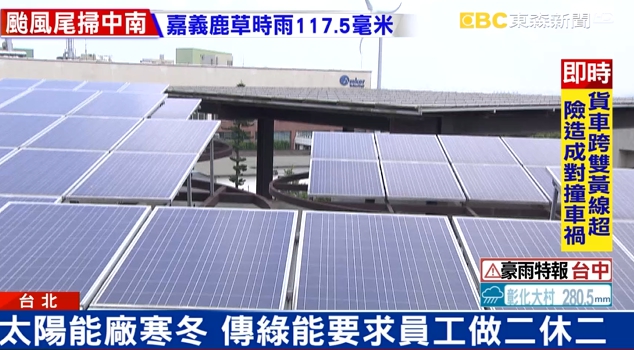 綠能科技代理發言人陳婷婷:「在這個淡季情況下,我們又不能說延續之前的加班,就是這麼多的時數,所以才會協調集團,還有模組子公司,去做一些產線調度規劃,希望把人才都留住,第三季的時候,我們看起來會比第二季好一些。」綠能科技強調是因應市況調整人力,一切遵照勞基法,不過太陽能廠出狀況,早就不只一家。