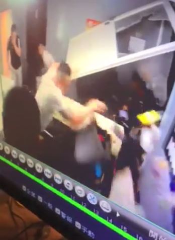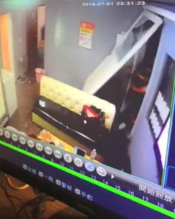 女網友在臉書社團「新竹爆料公社」PO出一段監視器畫面,影片中可見,原本平靜的客廳門上的玻璃突然被砸破,接著有2名男子破門而入,但身穿黑衣、西瓜皮髮型的男子在撞破門後還不小心卡在門框上,後來把門抬高才衝進室內,接著後面5~6名男子也跟著進來,過程中,1男翻桌卻被桌子砸到腳,另外幾名試圖翻倒沙發,卻翻不動最後用腳猛踹,最後還有一名男子大力甩完冰箱門後腳滑差點摔倒。