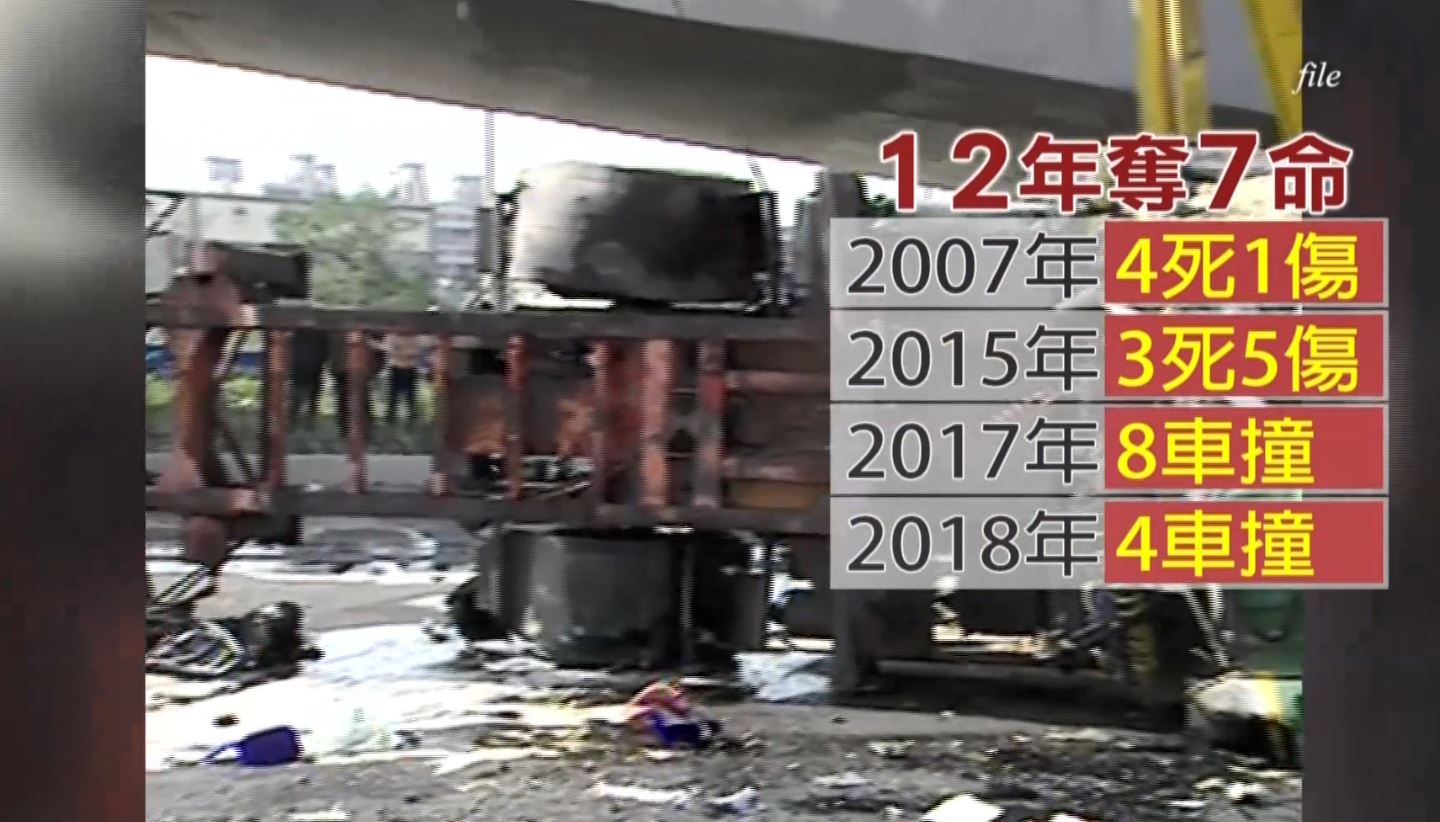 這條路幾乎每個月都有大車追撞意外發生,2007年,一輛15噸連結車因為煞車失靈,追撞造成4死1傷;2015年5月4日,一輛貨櫃車失控追撞26輛車,造成3死5傷;相隔兩年的同一天,又發生8車連環撞。現在又發生追撞事故,12年來已經奪走7條人命。