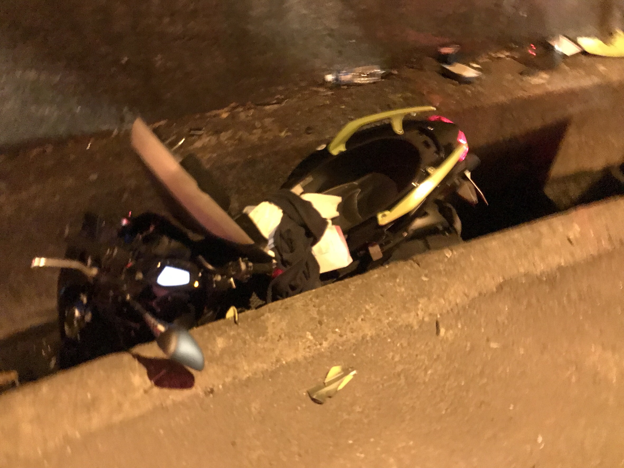 ▼機車頭撞毀凹陷、零件四散(圖/翻攝畫面)