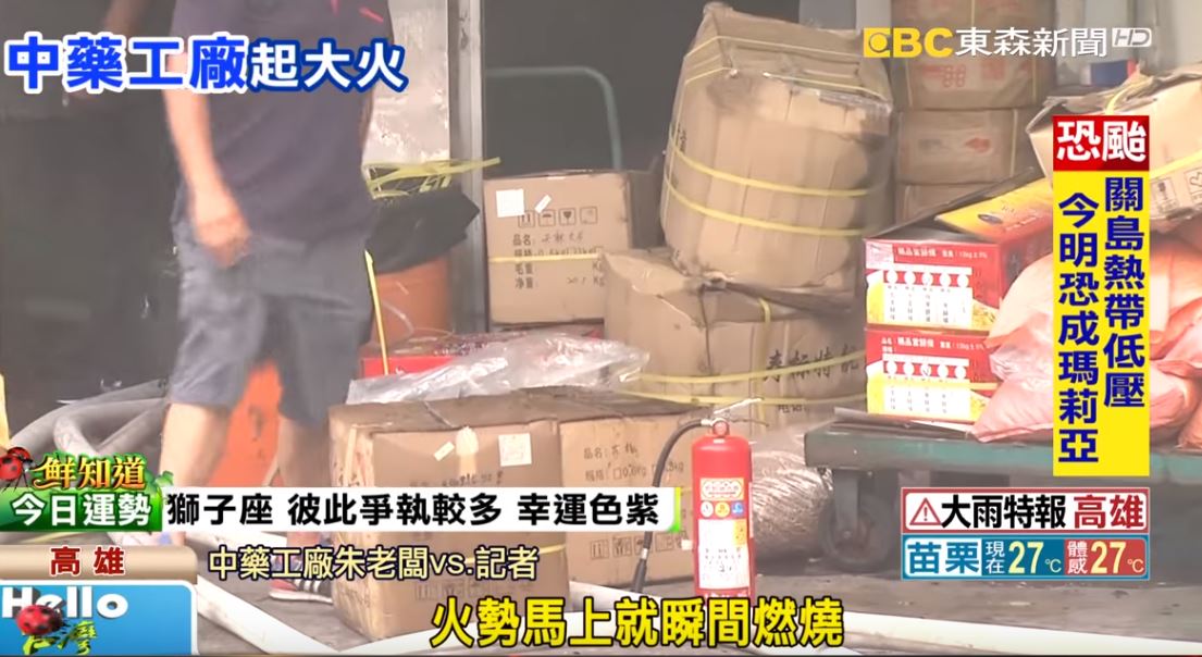 目擊民眾:「火很大,因為裡面都易燃物,裡面中藥,做中藥的。」