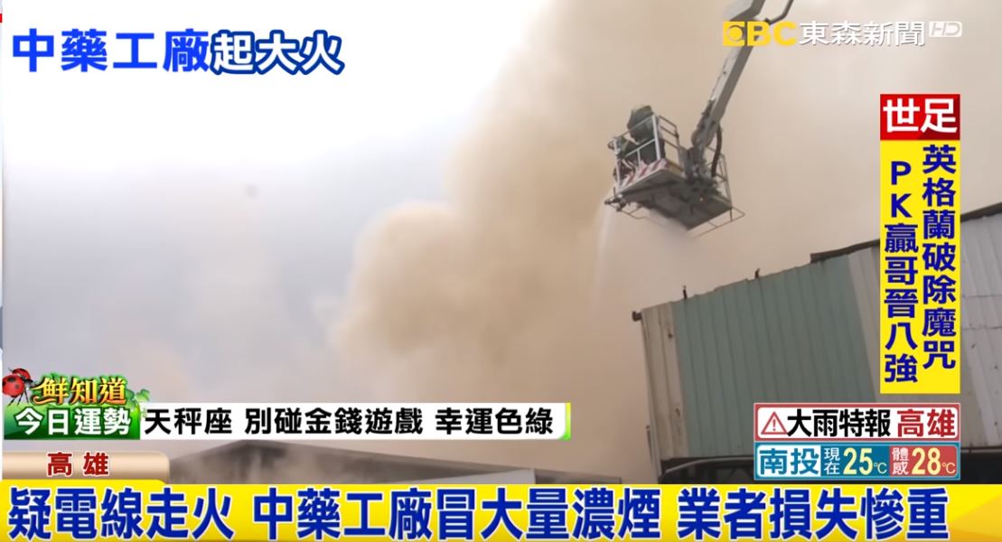 只不過廠區內都是易燃的中藥材和紙箱等,火勢迅速蔓延,消防隊總共出動18車54人加入滅火行動,所幸員工緊急逃出,沒人受傷。