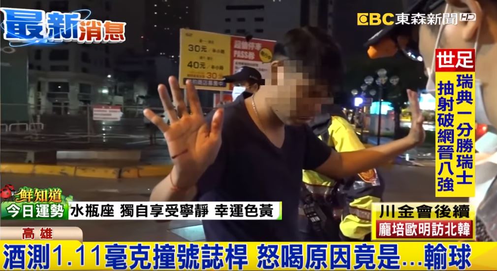 駕駛疑似因為看球賽,支持的隊伍輸球,心情鬱悶才會怒喝酒,警方研判可能是喝的太茫手腳僵硬,導致無法靈活行動,事後依公共危險將男子上銬,帶回派出所做筆錄,要釐清男子是閃車自撞,還是喝太茫釀禍。