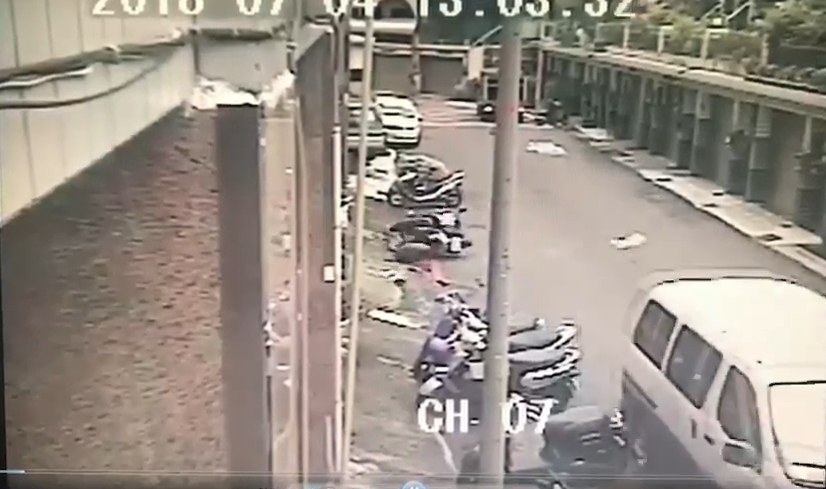 鄰居:「砰的一聲好像爆炸聲,好像瓦斯爆炸聲。」隨後119人員到現場,滿地的殘骸和碎片,滿身酒味的肇事駕駛受到擦挫傷,119人員將他送醫,而自小客在撞擊後,車頭全毀右側的車身也撞毀,被撞的店家鐵捲門被撞破變形,門口擺放的生財器具也被撞亂七八糟的,店家不只得停業還花錢花時間整修。