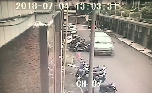 道路的監視畫面可看,自小客車經過安和路口彎道時,在沒有減速的狀況下,自小客車身開始飄移,接下來失控直接衝撞上路邊的民宅,車身在撞擊後又來個大甩尾,打轉將近一圈才停了下來,巨大的撞擊聲響把周邊的住戶全都嚇醒。受害住戶:「鄰居都有聽到怎麼會沒聽到(是爆炸聲還是怎樣),砰的一聲一根柱子被撞斷,在樓上被嚇醒,睡不著了頭好痛。」
