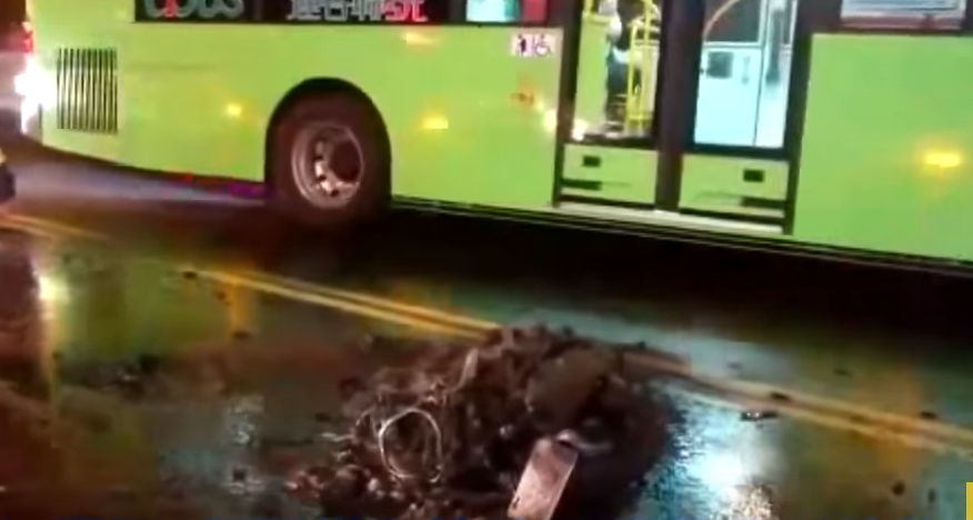 而回到事發現場,滿地車體零件散落一地,而撞人銀色轎車擋風玻璃也整個龜裂,車頭扭曲變型,可以想像當時撞擊力道有多大,消防隊接獲趕到現場,火燒車已經被鋪滅,只剩燒光的漆黑骨架。