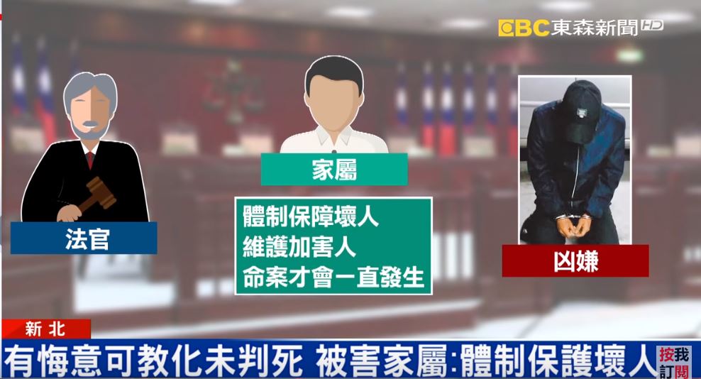 法官認為有悔意、可教化,因此沒判死刑!去年12月新北市泰山的許姓白牌車司機,因為欠債向郭姓女房東借錢遭到拒絕,竟然將她殺害棄屍,一審法官認為凶嫌曾經下跪道歉,有悔意,有教化可能,判他無期徒刑,被害家屬痛批,體制根本在保護壞人。