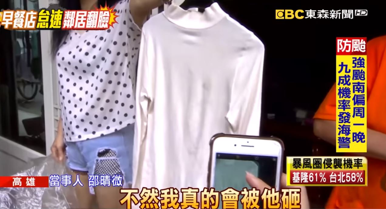 女子指控早餐店老闆搶手機還推擠她,把身上多處瘀青的照片與影片公開在網路上,指責早餐店老闆,放任客人臨停怠速,讓廢氣跑進屋內,但對面早餐店老闆也有話說。