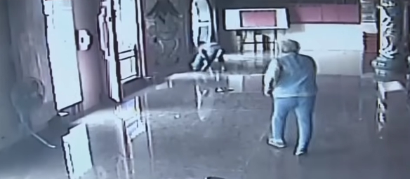 監視器畫面就拍下衝突的一瞬間,畫面中這兩個人一對上眼,一轉身就爆發全武行,兩個人打在一起,其它人看到這一幕立刻衝上去要勸架,結果沒想到穿著紅色衣服較高大的這一位也沒在管,連勸架的人都被推倒在地上。接著紅衣男一腳踹向已經倒在地上的白衣男,對方要爬起來時,甚至又一拳揮了過去,直接打中頭部,白衣男搖搖晃晃,兩個人似乎冤仇結很大,而當初要勸架被推倒在地上的老人家說紅色衣服的男子要打人是預謀的。