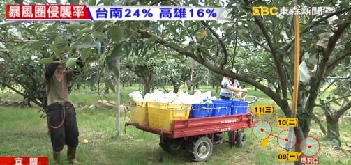 採收。彰化地區種植葡萄、花椰菜的農民也抓緊時間採收,趕緊做好防颱措施,就怕苦心種植的心血整個泡湯。