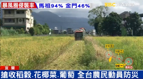 臨時請不到人,把兒子也都拉下來幫忙。另一頭收割機犁過一片片稻田,宜蘭地區稻穀,原本應該在7月底才能收割,現在才月初稻穀還沒成熟根本也無法賣給消費者,而苗栗也是同樣的狀況。