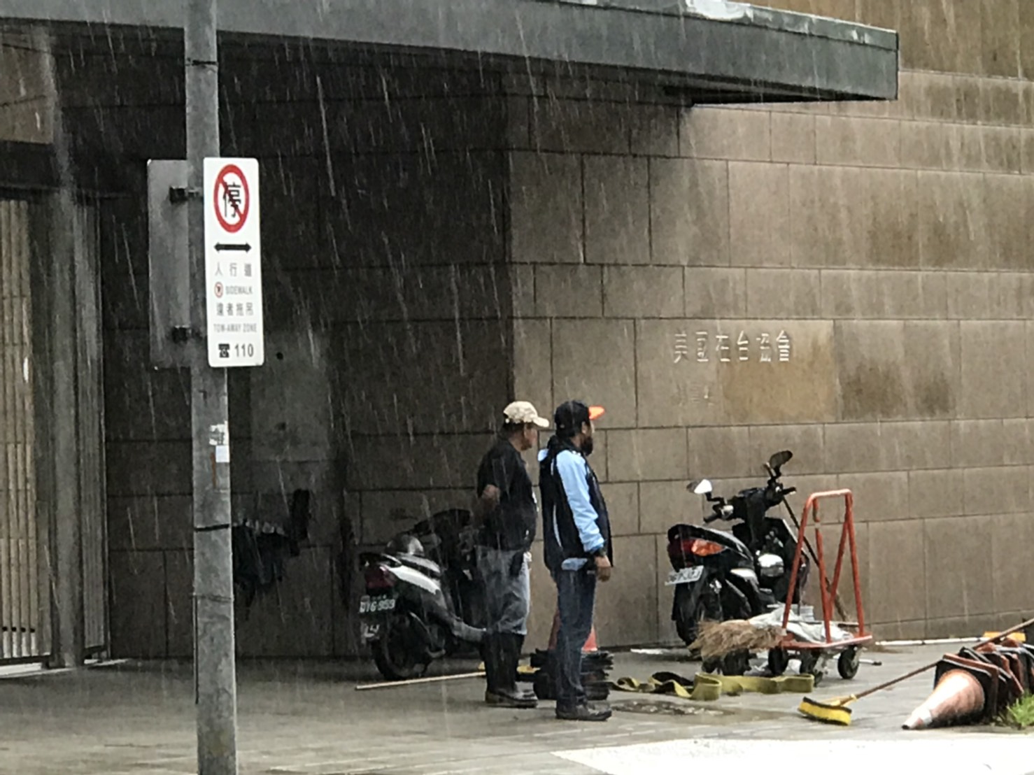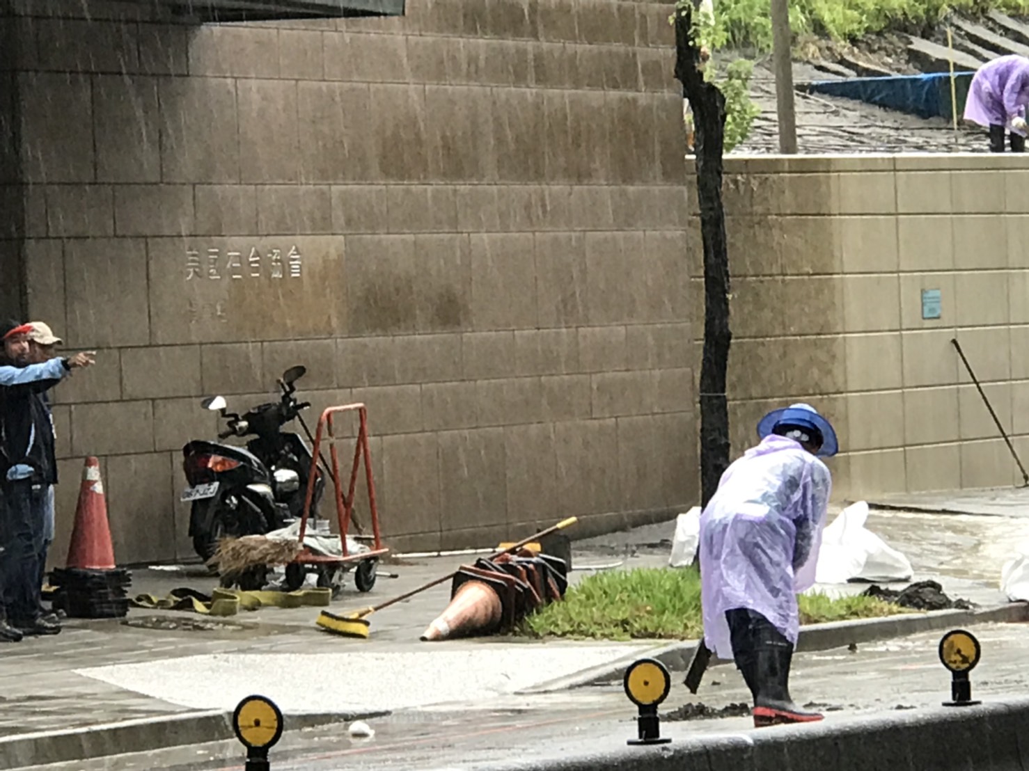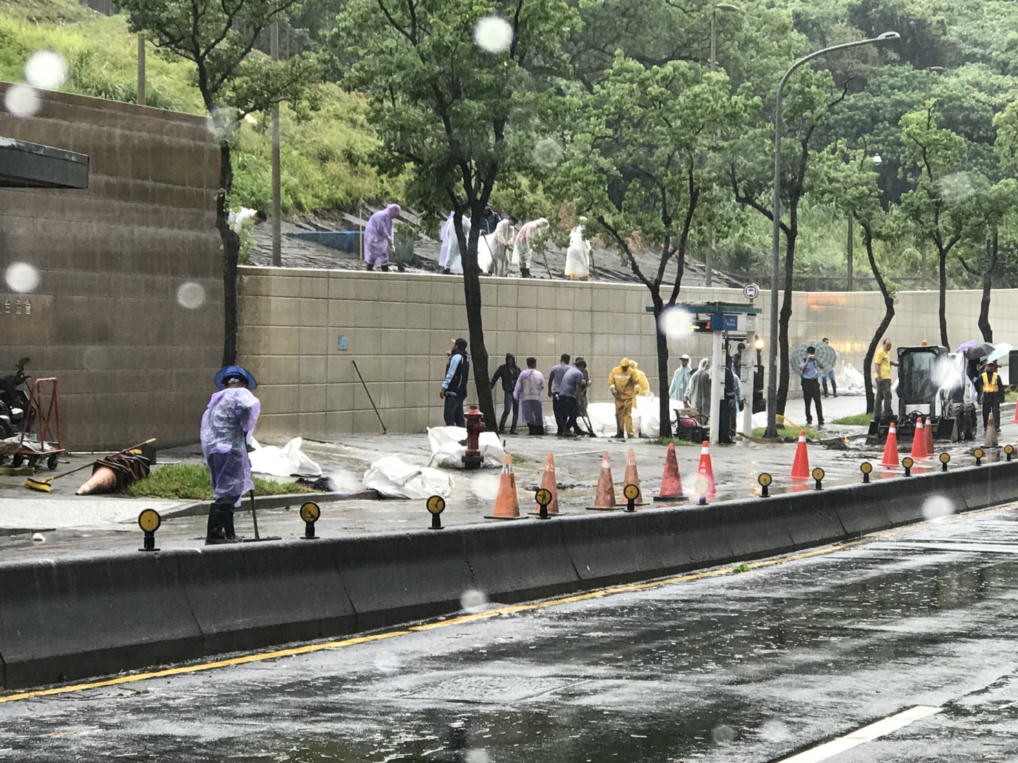 雨大的關係,造成多處路樹倒塌,一輛公車轉彎時因打滑失控,撞斷號誌燈,波及停等紅燈的三輛車。
