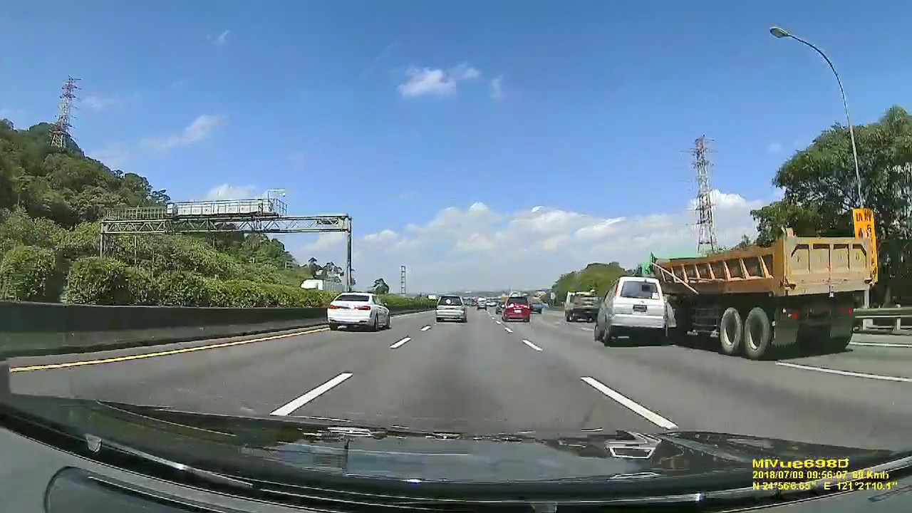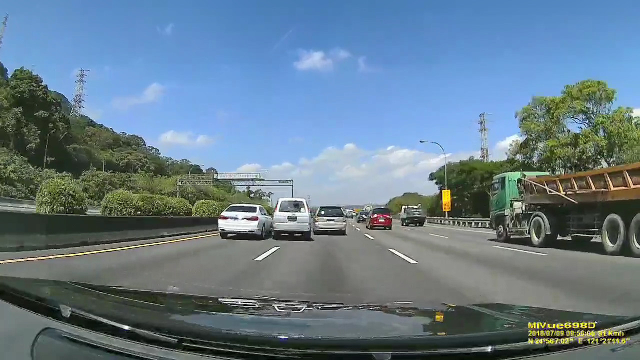 當事人在臉書《爆廢公社》發文,他PO出一段行車紀錄器影片,事發時間在2018年7月1日中午12時15分左右,透過畫面可以看到,當時下著大雨,他正開車行經國道一號北上216公里處時,左前方的小貨車欲變換車道,但疑似因天雨路滑,加上車速過快,小貨車煞車不及導致整台車失控翻覆,駕駛也被甩出車外。這畫面把他嚇出一身冷汗,「腦海中一瞬間浮出人生跑馬燈…第一時間已經打電話報警,祝當事車輛人員平安」。