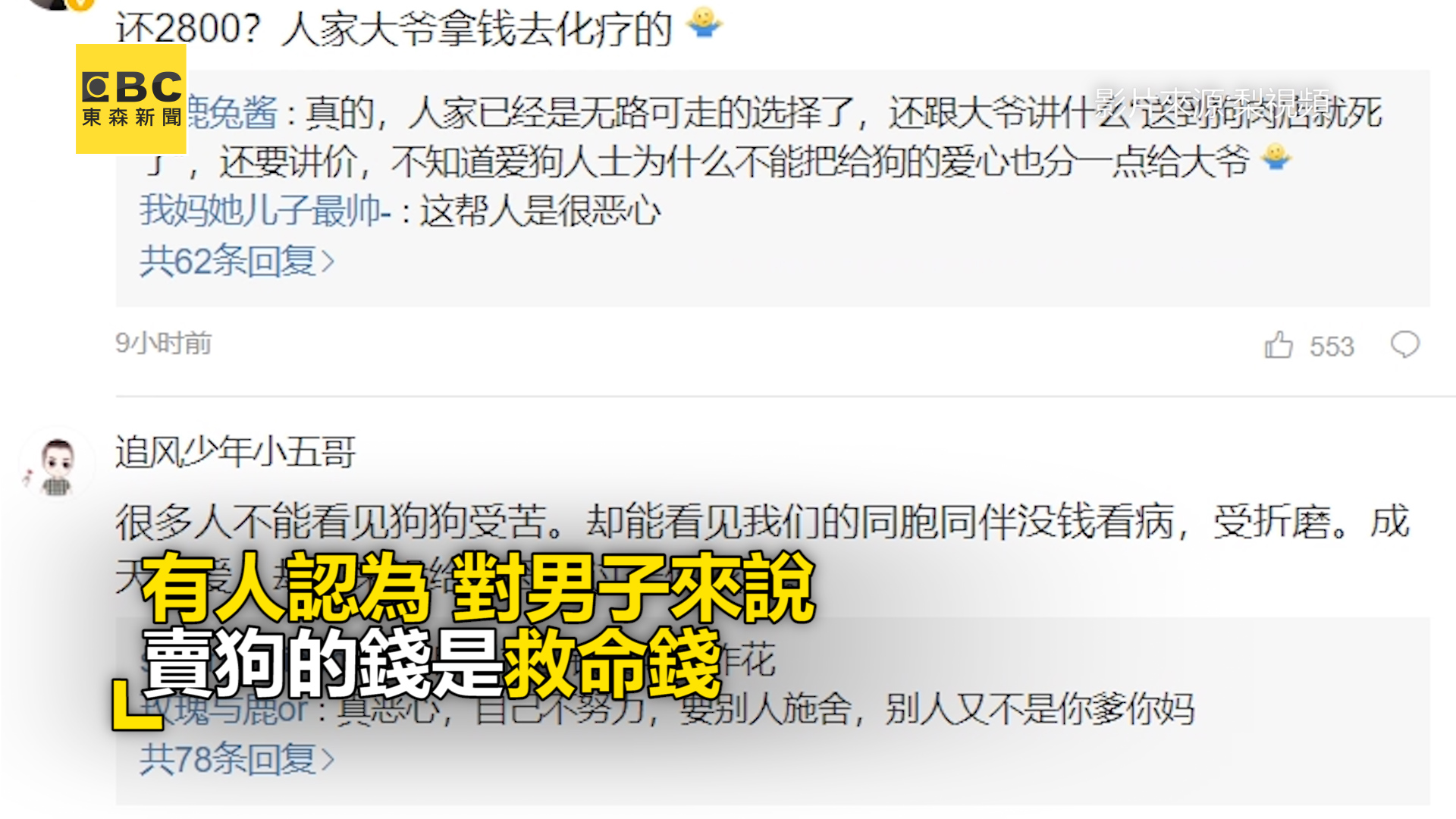 後來愛狗人士跟到男子家才發現,原來男子罹癌已久,經濟狀況不佳,逼不得已只能賣狗籌救命錢。後來經過討論後,最終愛心人士以2850人民幣(約台幣13000元)買下這些狗。雖然與男子一開始預期的3200人民幣(約15000元)有點落差,但還在接受範圍。