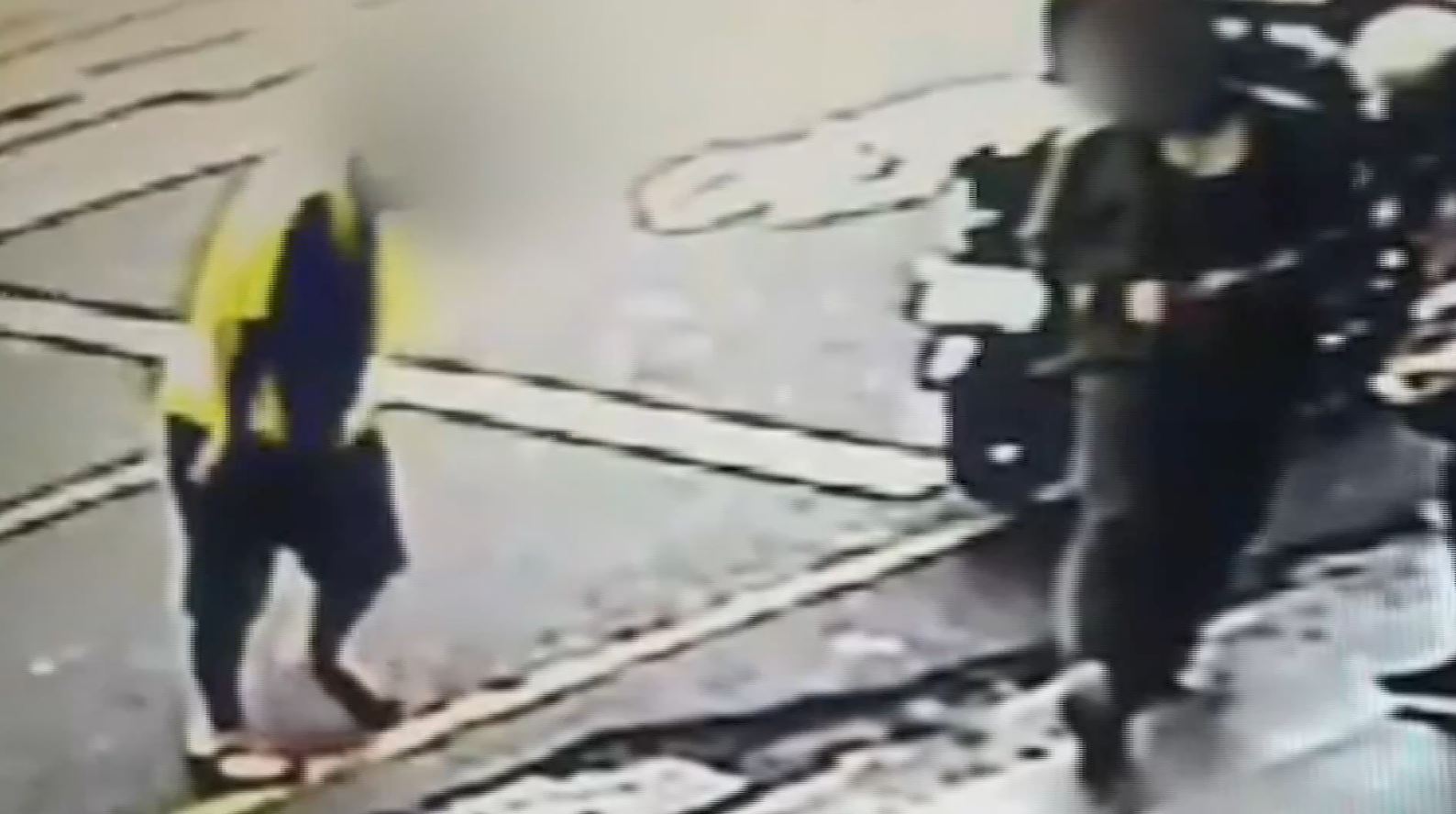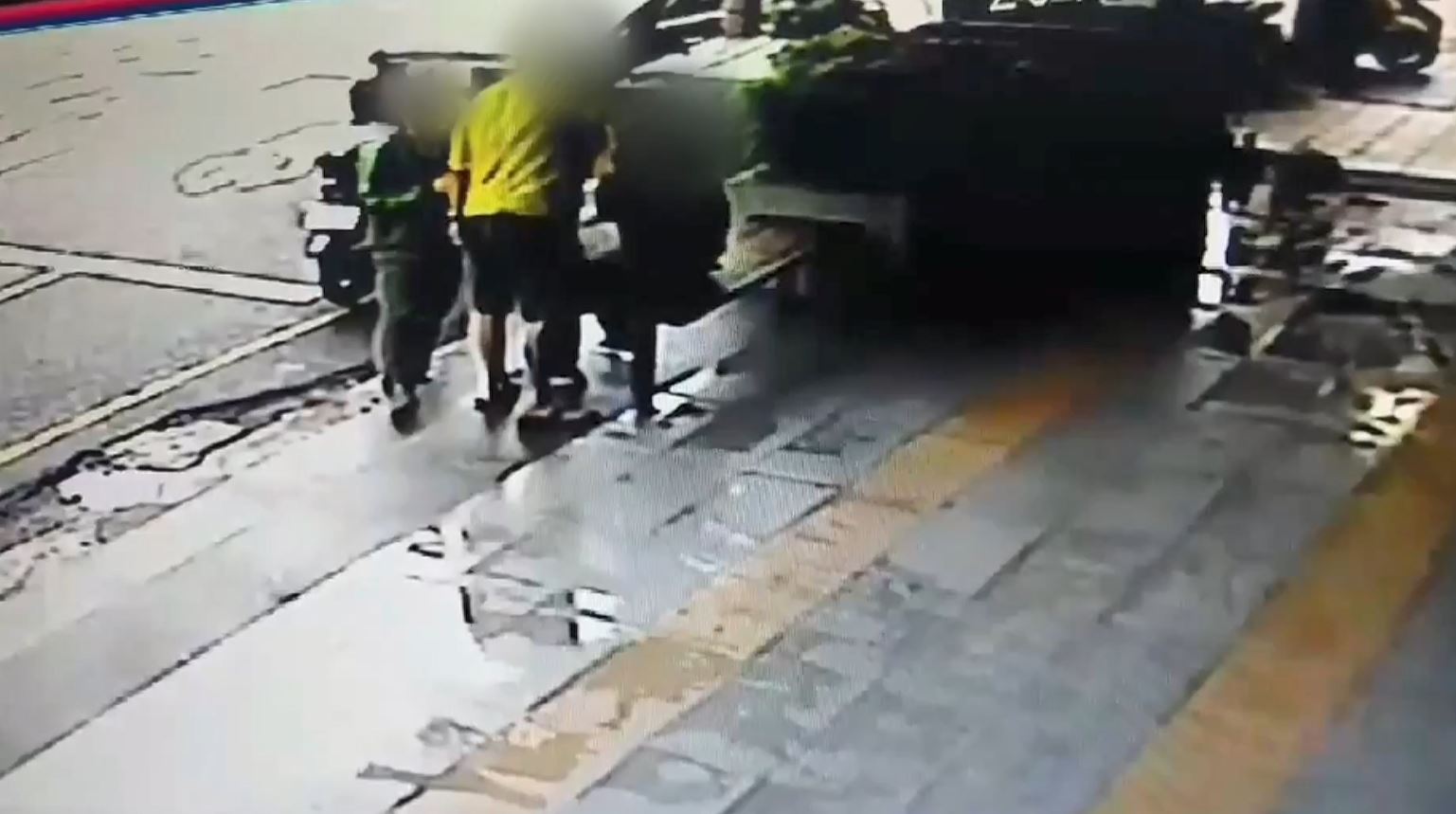 監視器拍到黃衣男子從慢車道朝