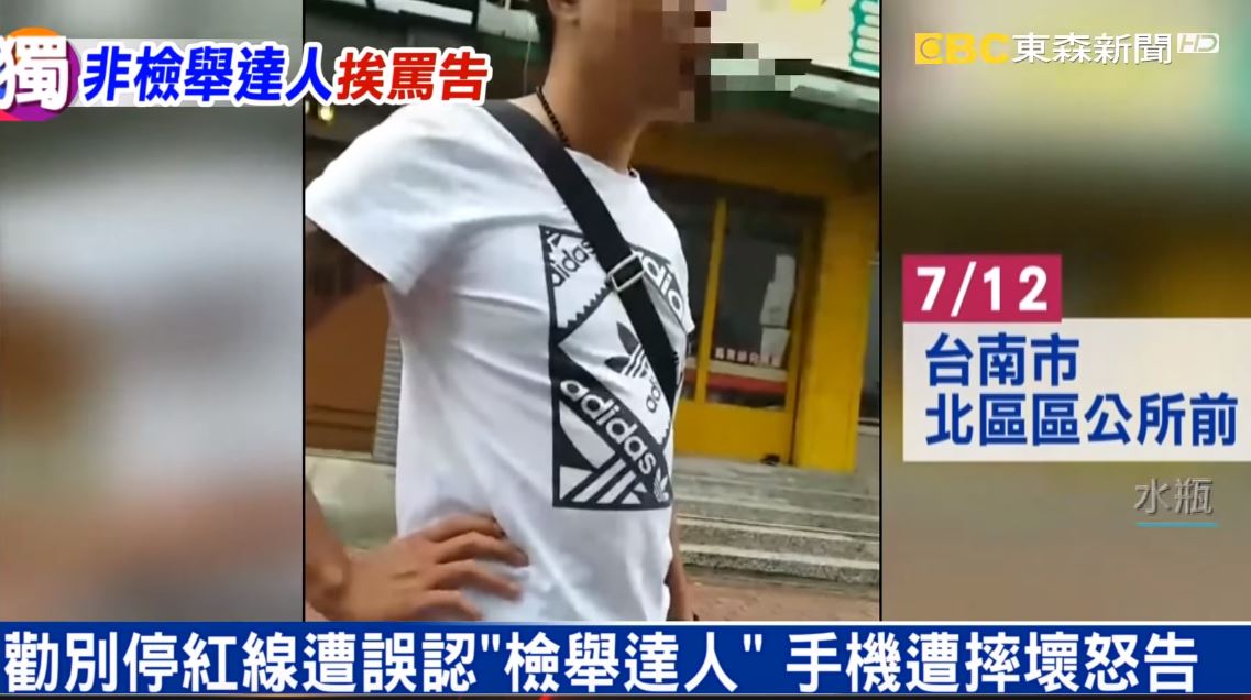 原來機車騎士習慣把行車記錄器放在安全帽前,只是好言相勸別停紅線檔車,卻被對方誤以為是檢舉達人,行車記錄器與手機都被摔壞,他除了對男子提告,也將對留言的網友提出毀謗的告訴。