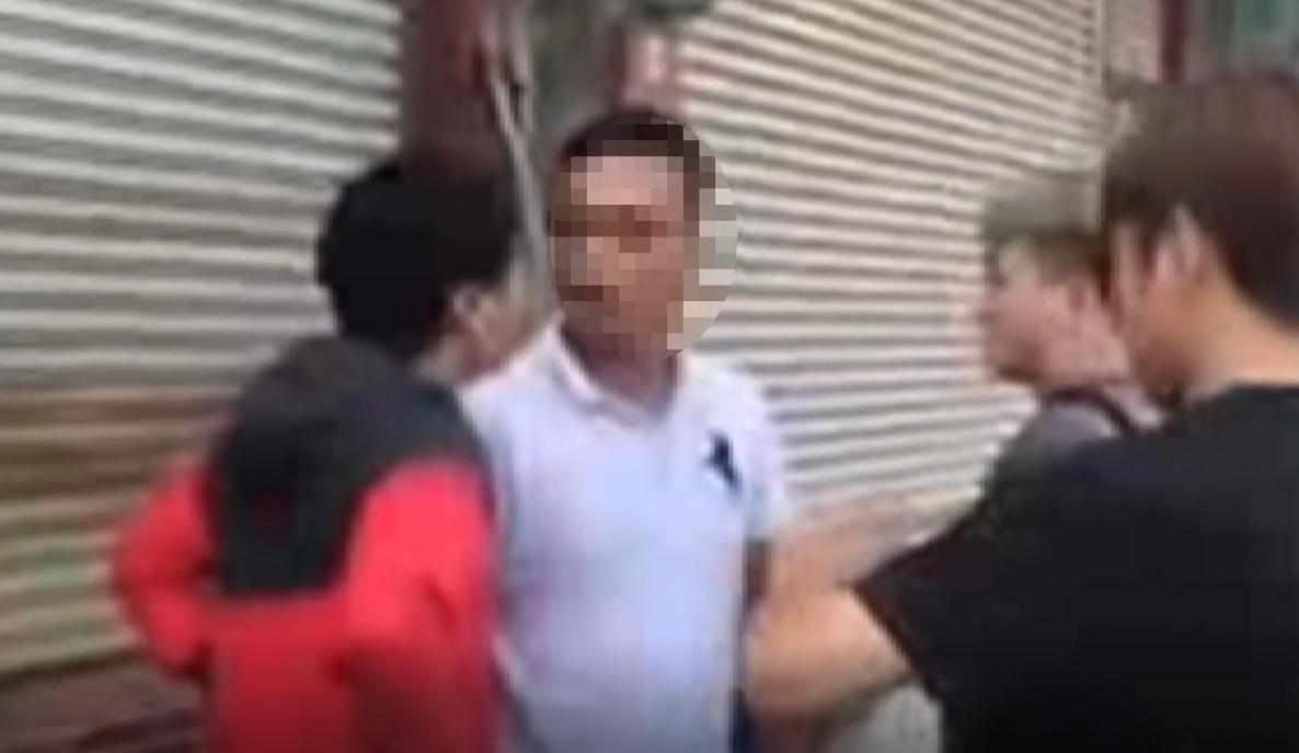 一名男子跟另外一名,頭帶安全帽的男子對嗆,雙方現場一度緊張。結果這名男子又惹毛了其它人,另外一個人又跳出來,雙方火氣都到達了頂點。男子一看人多了,討不了便宜,趕緊打電話報警,最後員警抵達現場。