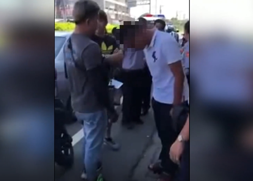 跟男子對嗆的一方人馬,拿出了手機秀畫面,員警過來一看,似乎懂了什麼,而男子一改之前態度,整個大逆轉,頻頻跟對方來道歉,一切都是自己的錯,希望這件事算了,究竟手機畫面當中,是什麼畫面呢?原來是一段行車記錄器影片,男子開著一部轎車,在通過這個路口後,疑似惡意來逼車,差點造成旁邊騎士失控摔倒,沒想到下來後,卻反而惡人更大聲,造成騎士同行友人們共憤,最後驚動警察到場,男子道歉就說,一切都是誤會。