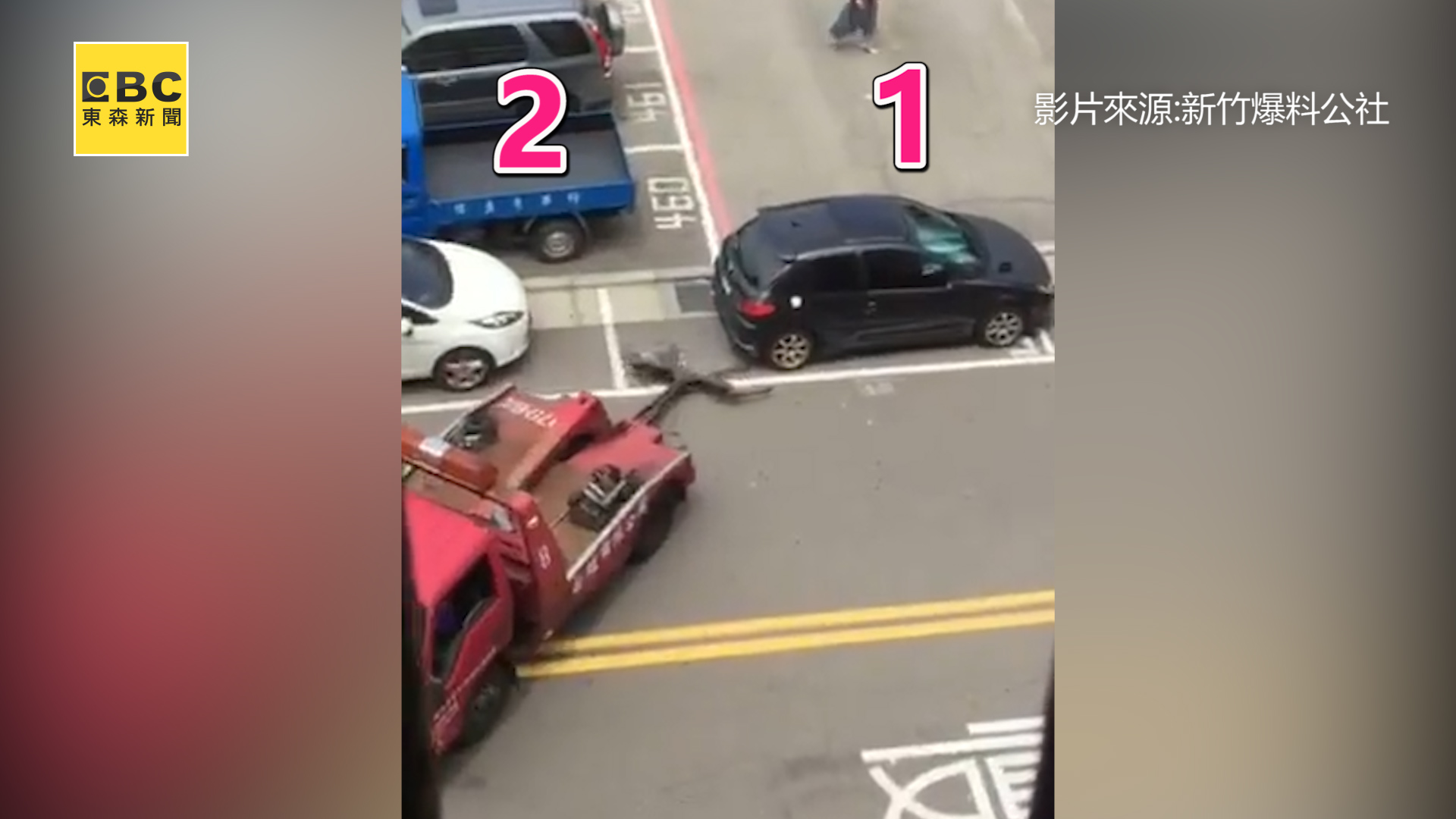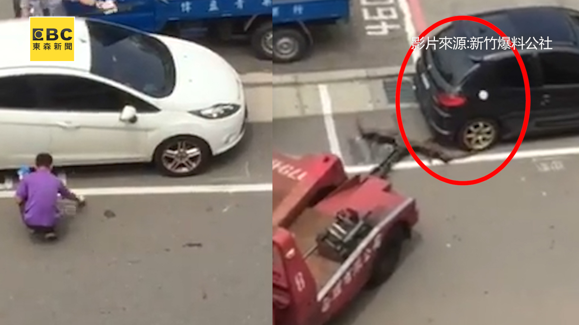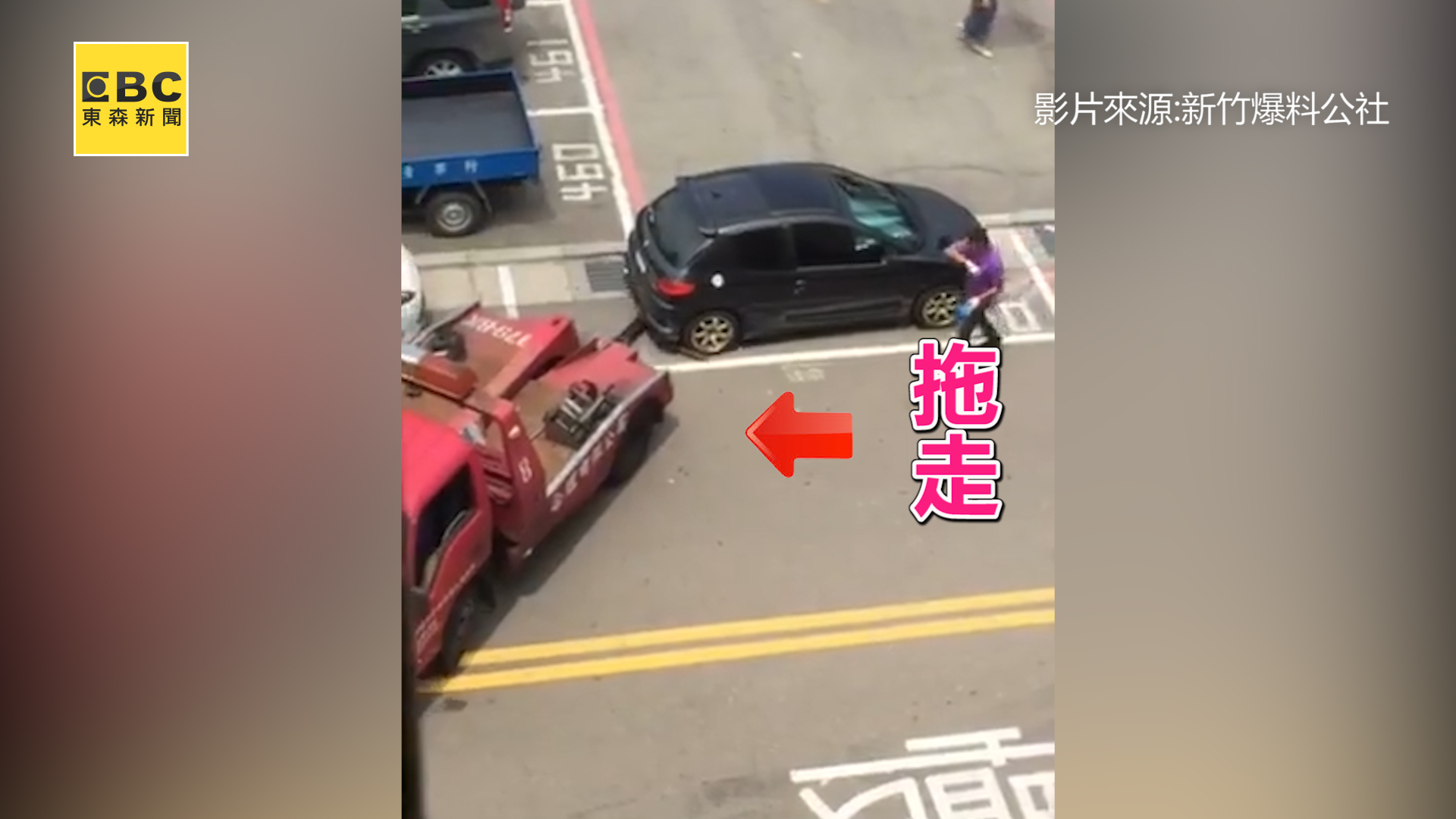 車子停在停車格裡卻還是被拖吊?有網友近日在臉書「新竹爆料公社」PO出一段影片,影片中,只見業者先是蹲在黑色轎車前寫下拖吊的資訊,並開始和另一名同事忙著把車架起來,過沒多久還有一名警員到場,大約花了四分鐘就將車輛拖離現場;接著他們又拖走後方的白色轎車,一次就拖走兩輛違規停車。
