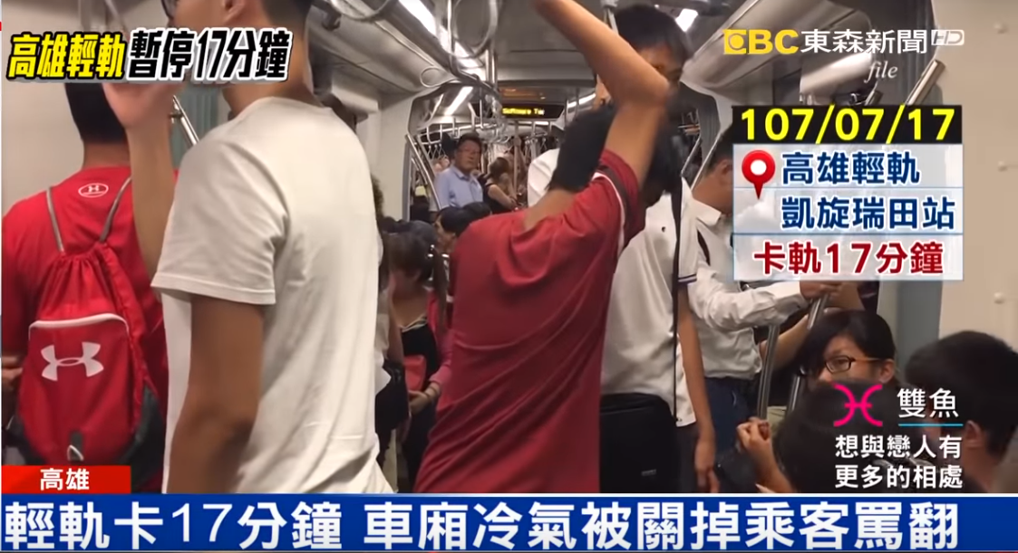 故障,列車就靜止停在軌道上,因為害怕電力不足,因此駕駛把冷氣關掉,所有乘客就在一個密閉空間長達17分鐘。