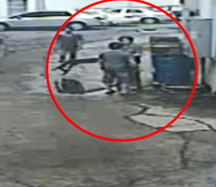 監視器畫面拍下,5、6名男子起口角大打出手,現場氣氛超火爆,起爭執的雙方都有人環抱勸架,避免衝突擴大,一名白衣男子被帶進工廠內仍不斷回頭嗆聲,本以為架開雙方可以消消火氣,結果還是沒用,一根木棍從廠內飛出來,火爆氣氛正式引爆,雙方都想衝上去打對方,但都立刻被架開,一名男子倒在地上掙扎,白衣男子則靠在牆上,但倒地男子爬起來後忽然很火爆,抓起旁邊木棍揮舞,試圖攻擊,大夥一擁而上將他壓制在地上。