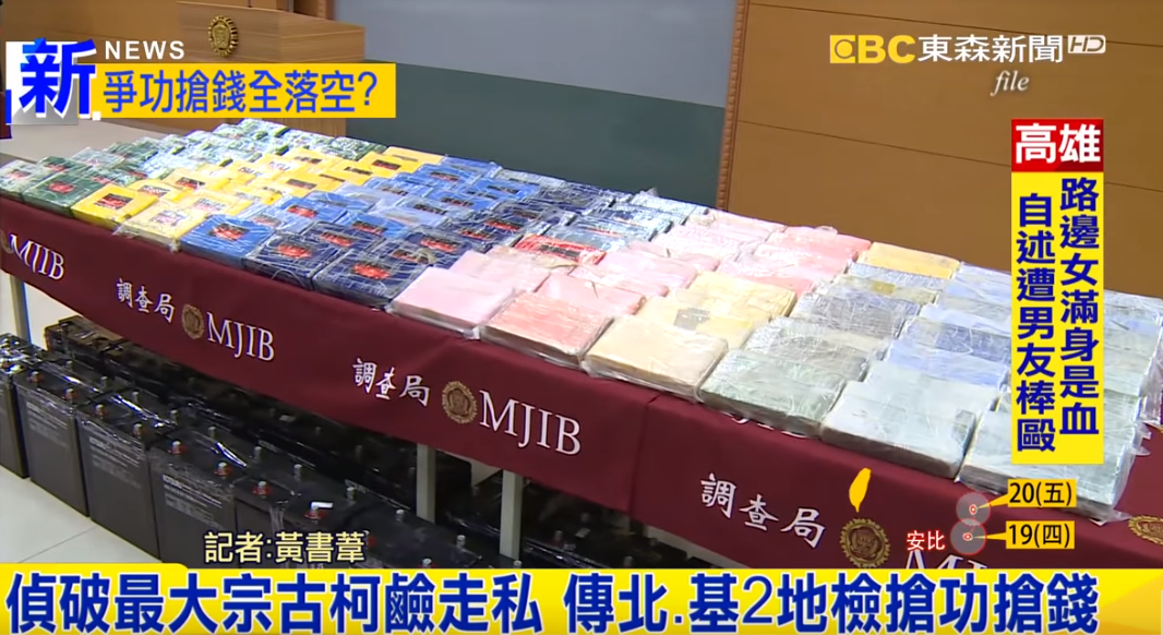 一排排證物擺滿桌,仔細一看都是高純度的古柯鹼,2017年12月調查局破獲這起最大走私案,毒品市值至少上百億元。