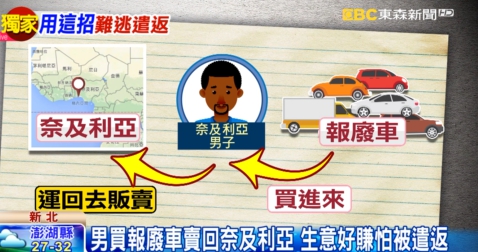 記者黃書葦:「奈及利亞籍男子跟本國籍女騎士,在這個路口發生車禍意外事故,但是他卻堅決不肯向警方透露他的真實姓名,警方為了釐清他的身分,只好把人帶到移民署,到了移民署按指紋結果發現,系統裡面沒有男子的身分資料,仔細一查 原來才發現,這名男子已經逾期居留台灣太久了,系統裡面也找不到。」