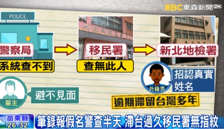 警方大費周章,假名字在警政系統查不到,外籍男子的雇主怕雇用非法勞工,躲起來不接電話,只好把人帶到移民署,沒想到移民署也沒有資料,李姓騎士第一時間提出告訴,員警只好再將外籍男子移送地檢署,法院上外籍男子招認自己的真名字,一查才發現男子
