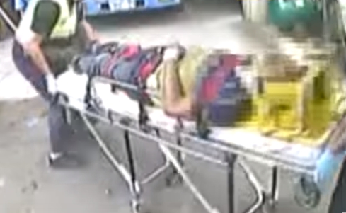 救護車趕到意外現場,分別將兩名傷患抬上擔架緊急送醫。