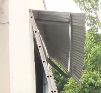 送醫後還好沒有生命危險,警方初步調查,疑似遮雨棚螺絲沒鎖好才會導致摔落。