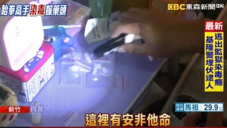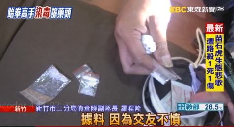 女子坐在地上不斷應好,另一頭滿是刺青的男子,坐在地板上。警方到這對夫妻家中,搜索毒品。在散落的物品中,員警眼尖發現毒品就在這,仔細查看一旁的桌子,上頭還有海洛因以及磅秤。隨後員警還在紫色化妝台,發現安非他命。