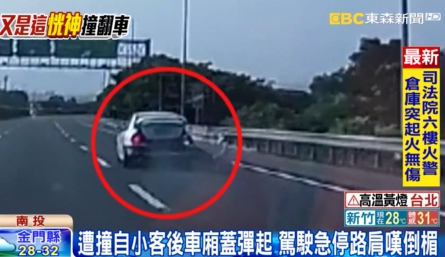 救護車到場只見劉姓駕駛,從翻車的白色自小客窗爬出來,警方調查車主同樣也是因為恍神追撞到前車,然後衝去撞護欄翻車左手挫傷 。