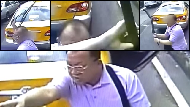 23號早上七點多,翁姓男子在新北市三重的集美國小公車站想要攔公車,不過因為來不及攔下,竟然遷怒公車駕駛,轉搭計程車,一路狂追在公車後方,從三重追到台北市忠孝西路上。公車乘客林小姐:「兩支雨刷都被他折下來,一直打,整個玻璃到處飛。」好端端的搭公車上班,卻無辜遭殃,臉上掛彩,只能貼上紗布。