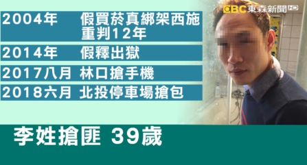 搶匪一路跑了約500公尺,也好在兩名騎士熱心幫忙,搶匪沒能得手順利逮人。這名39歲的李姓搶匪。
