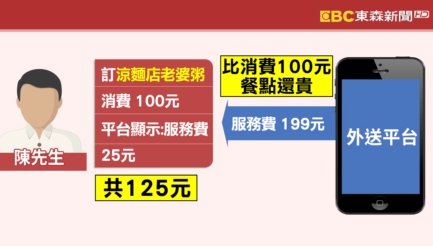 透過APP下訂,不用出門,餐點就能送到家,但有一名陳先生透過外送平台,訂了餐,結果卻被多收服務費,讓他氣得向平面媒體投訴,根據這名陳先生表示,自己是訂了一家涼麵店的老婆粥,消費金額是100元,根據平台顯示的服務費,是25元,加起來應該 125元,但最後服務費卻變成199,換算下來比他點的餐點還要貴。