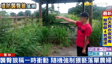 雲林縣二崙鄉一名婦人這個月21日傍晚,遭一名穿紅衣男子熊抱