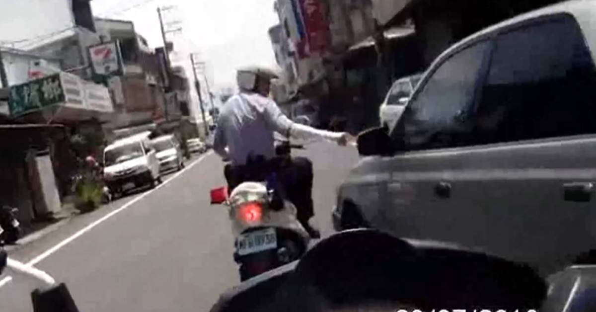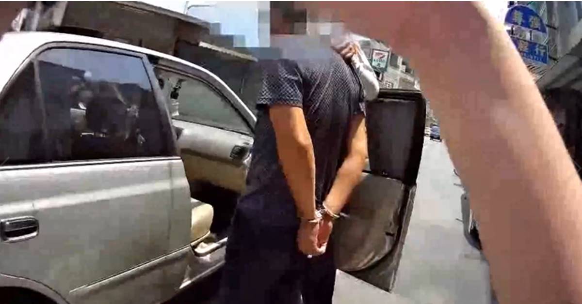 員警眼尖,同時夠機警,放倒機車擋住嫌犯車子,再果決的掏槍控制住場面,順利抓到毒蟲。