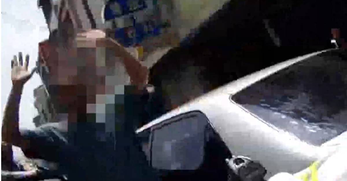 ▲▼高雄員警巡時發現有3男1女共4個人在車內形跡可疑,上前盤查時,嫌犯企圖開車衝撞。(圖/東森新聞)
