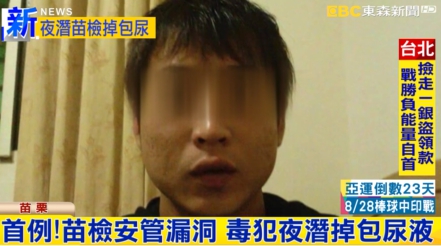 尿液。一名葉姓毒犯因為擔心驗尿過不了關,採尿後就躲在苗栗地檢署,趁夜潛入採尿室將自己的尿液