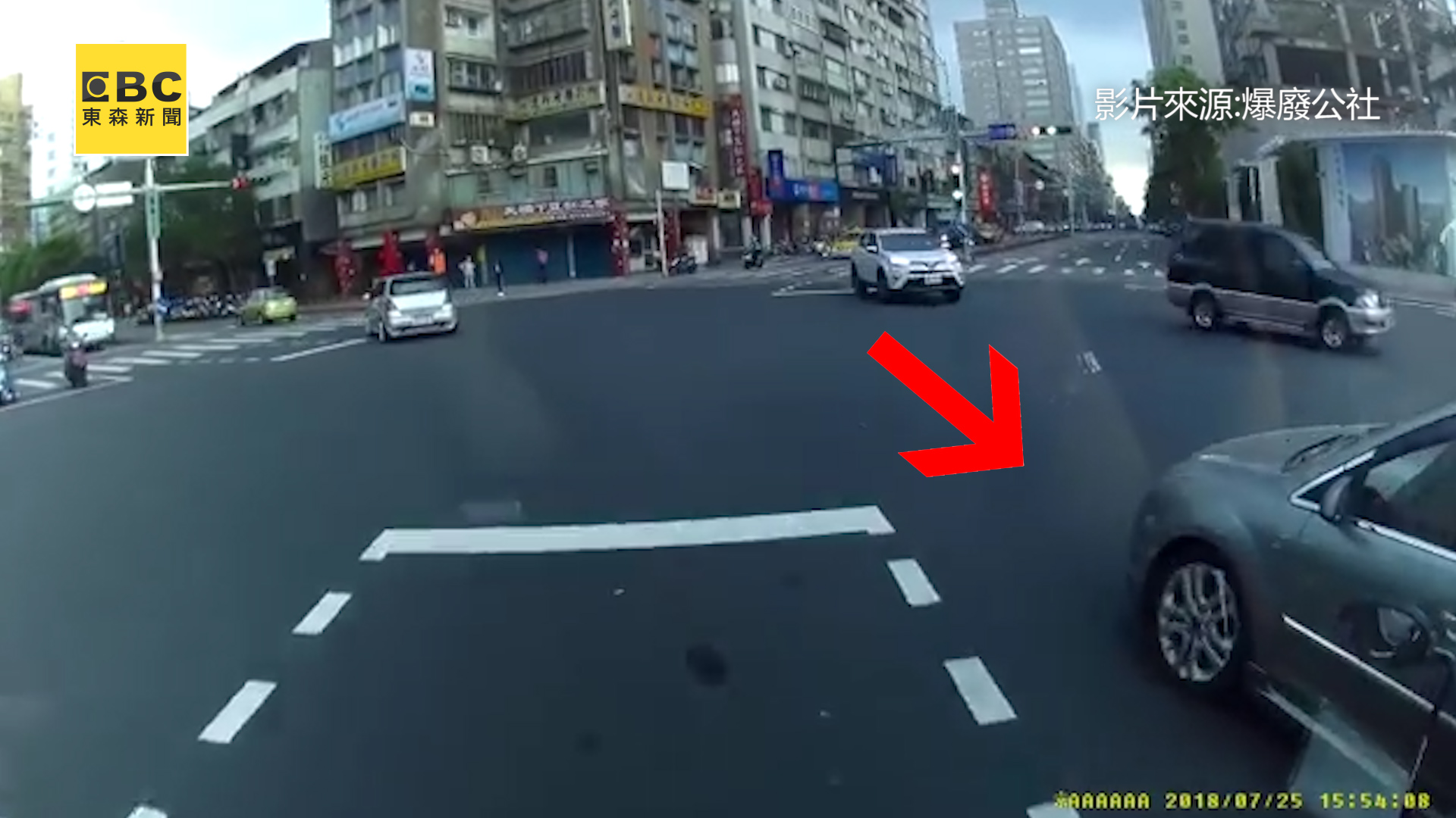 一名蔡姓網友25日在「爆廢公社」po出一段行車紀錄器畫面,他開車行經永春捷運站附近路口時,遇到一輛灰色轎車未依規定、