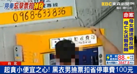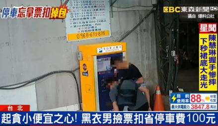 東森新聞記者羅意瑾:「當時黑色衣服男子,就是在找錢出口看到,遺留下來的票扣,後來投到機器裡面,發現不需要繳費,於是他就調包票扣,省下停車費100塊錢。」